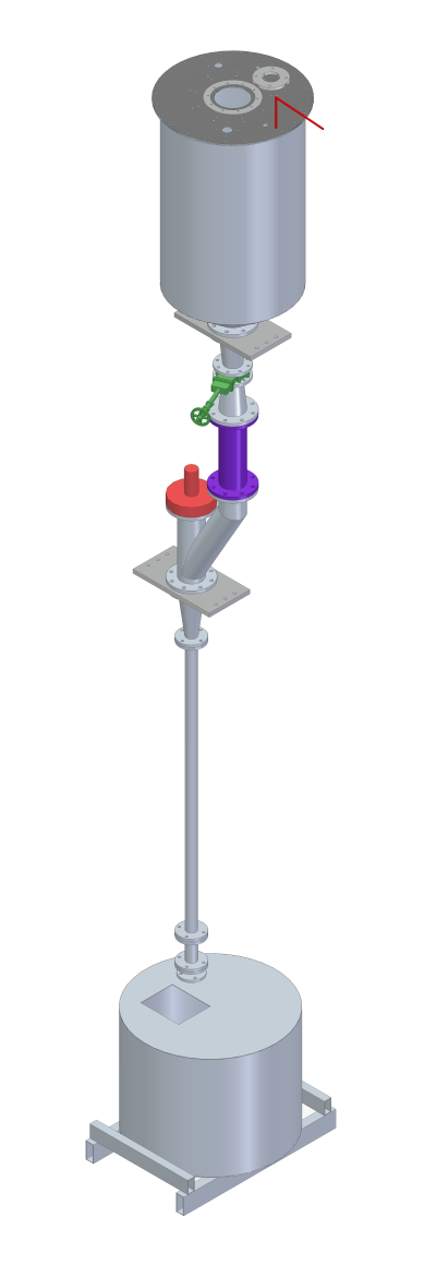 Variation of cone outlet diameters to control residence time and mass flow rate.